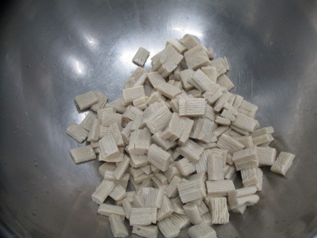 今日の主菜は「かつおの生姜ソース」です。角切りのかつおにでん粉をつけて油で揚げ、生姜をたっぷり使ったソースを、ごまと一緒に絡めました。実は、「かつおの生姜ソース」は、給食では今年度2回目の登場です。1回目は、5月の給食で登場しました。