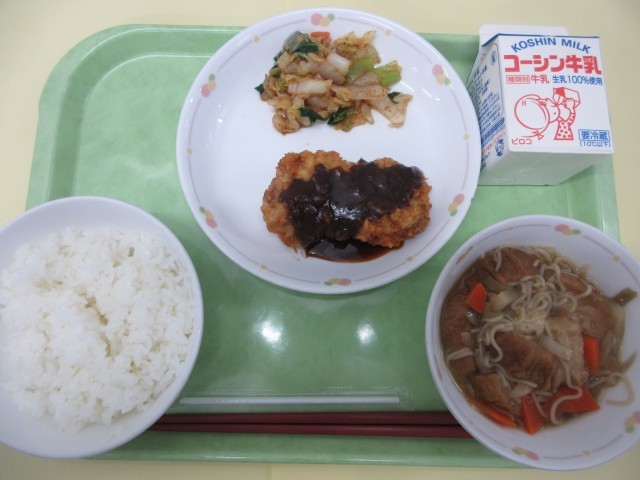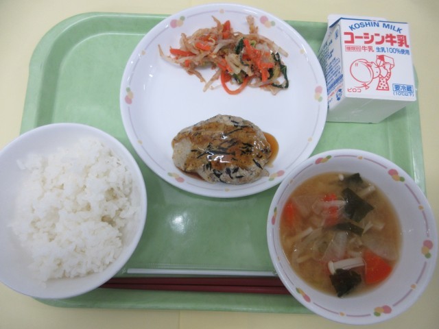 先週・今週は「ごはんを味わう週間献立」です。5日間、毎日違う品種のお米が登場します。 ごはんの色や粒の大きさなどの見た目、食べる前の香り、もちもちした食感など種類による違いを、よく味わって食べてほしいと思います。今日のごはんは茨城県産の「ひとめぼれ」です。「ひとめぼれ」は、宮城県生まれのお米で、コシヒカリと初星を掛け合わせて作られました。適度な粘りとサッパリとした口当たり、ふっくらとした食感が特徴で、どんな料理にも合います。