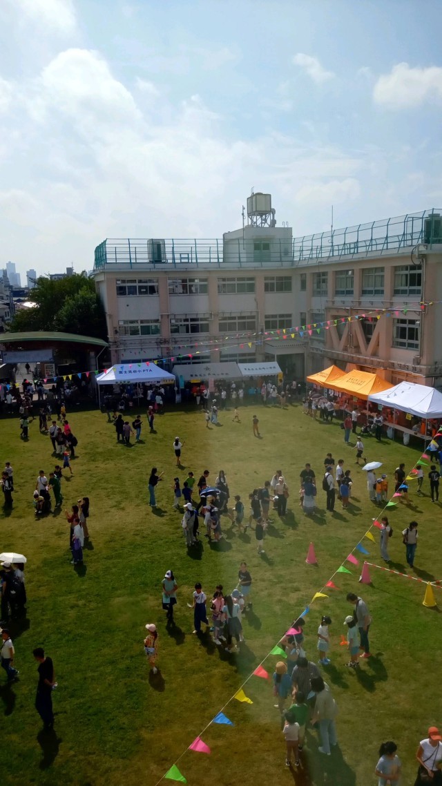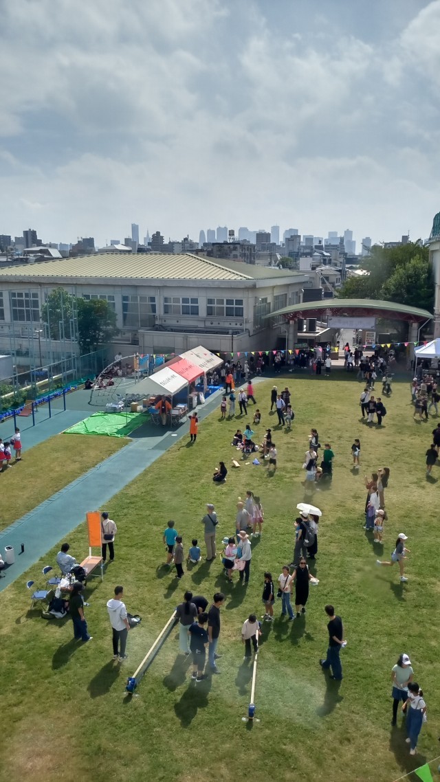 晴天の中、第34回わくわく冒険まつりが、長崎小学校の芝生の校庭で開催されました。