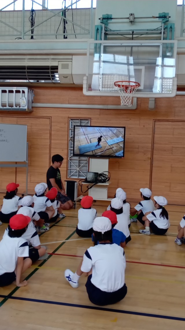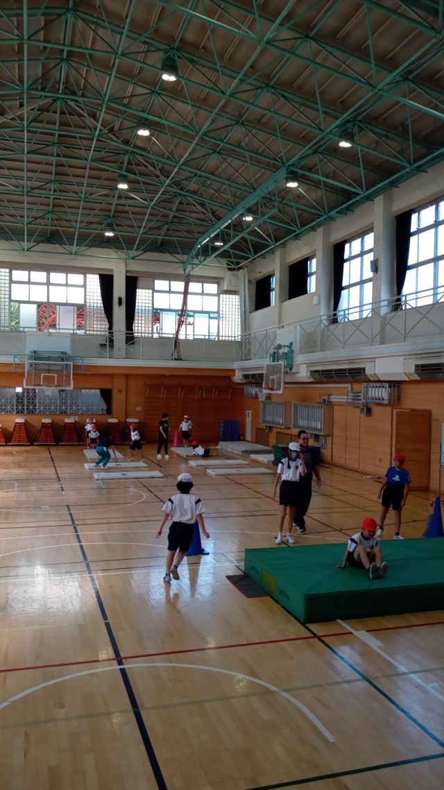 今日のめあては、「場の使い方を覚え、転がったり支えたりする運動を楽しもう」でした。