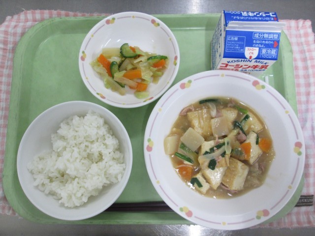 ごほん、なまあげのちゅうかに、やさいのかふうづけ、ぎゅうにゅう