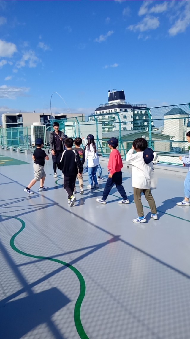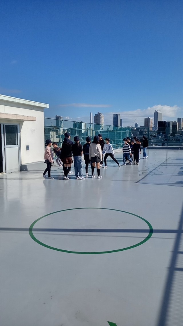 中休みの屋上では、長縄跳びを楽しんでいます。
