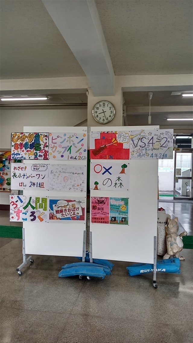 11月18日 明日は140周年記念縁日集会 公開日 2025/11/18 更新日 2025/11/18 お知らせ 昇降口にお店のポスターが集まりました。そして、代表委員の子供たちが校庭で明日の集会の練習をしています。