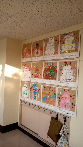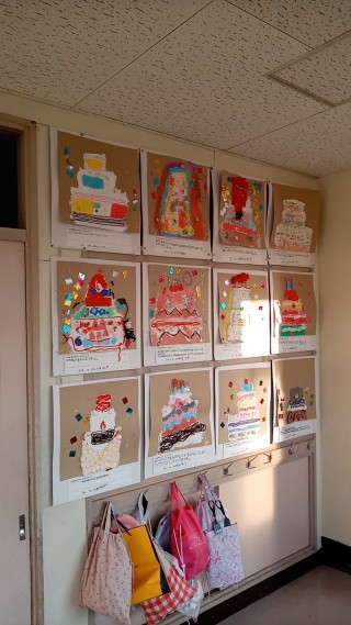 「140周年おめでとうお祝いケーキ」図工 公開日 2025/12/03 更新日 2025/12/03 2年生 2年生は、「140周年おめでとうケーキ」を作りました。一人一人工夫して作っています。 2年生
