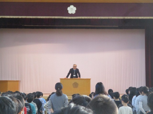 「おはようございます」 終業式のお話をします。暑い夏、短かった秋、このごろは寒さも厳しくなってきましたね。通知表の所見を1年生から6年生まで読ませてもらいました。できるようになったこと、活躍したことが、皆さん書かれていました。体も心も一回り大きく成長しましたね。