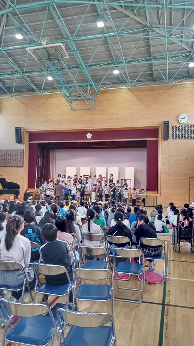 2月6日 140周年記念音楽会(1年) 公開日 2026/02/06 更新日 2026/02/06 1年生 ボイスアンサンブルでは、元気な動物の鳴き声が体育館に響き渡りました。合奏「きらきら星」は、曲想の変化を楽しむことができました。 1年生