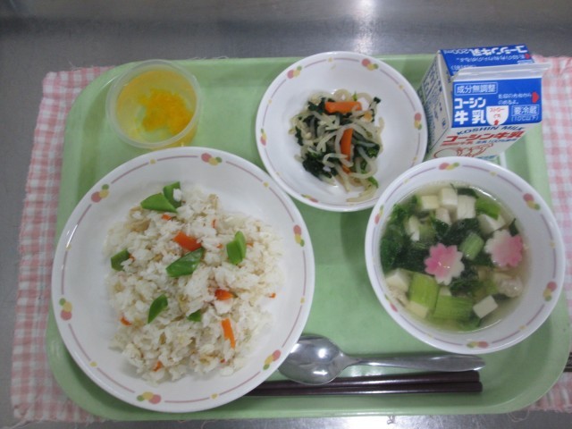 たいめし、からしあえ、さくらふのすましじる、サイダーゼリー、ぎゅうにゅう