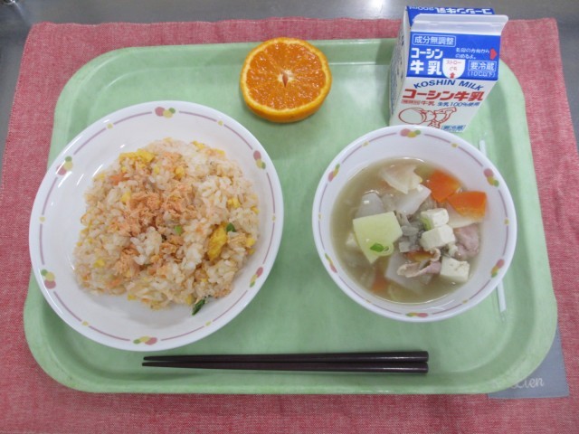 さけずし、けんちんじる、くだもの