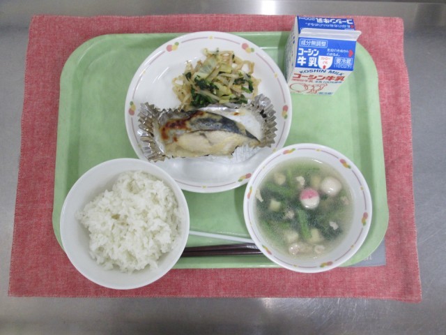ごはん さかなのみそマヨやき やさいのおかかあえ こうはくふのすましじる