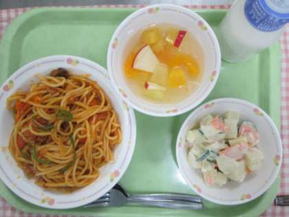 牛乳 スパゲッティナポリタン ポテトサラダ フルーツポンチ