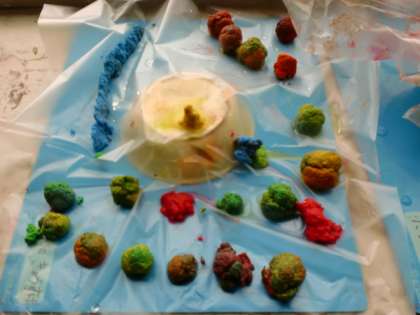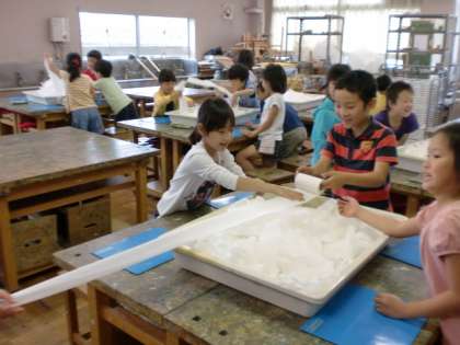 2年:図工「ふわふわねんど」 公開日 2014/06/06 更新日 2014/06/06 2年生 今日は、トイレットペーパーと洗濯のりに絵の具を混ぜて、ねんどをつくりました。感触が次々変化する楽しい題材でした。子どもたちは大興奮でねんどに向かっていました。 2年生