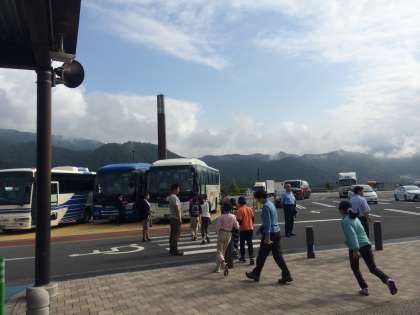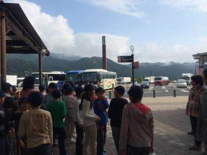 バスレクで楽しんでいます。 『輝れ!』を歌って盛り上がりました。