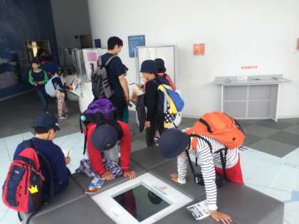 富士山レーダードーム館でクイズ形式の問題に挑戦。