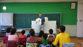 五組「英語活動」 公開日 2014/10/30 更新日 2014/10/30 五組 「What sport do you like?」「What desert do you like?」を学びました。じゃんけんをして、勝った方から、質問をするというゲームもしました。