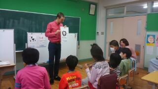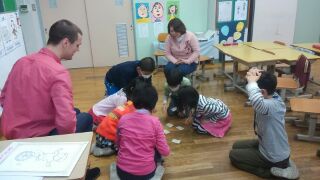 五組「英語活動」 公開日 2015/01/16 更新日 2015/01/16 五組 今年初めての英語活動でした。「好きな飲み物は?」「好きな動物は?」の学習をしました。また、かるたのようなカードのゲームもやりました。