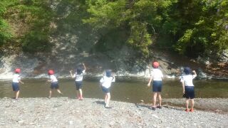 とてもよい天気! 川の水は、気持ちがよかったです。石投げもして、楽しみました。