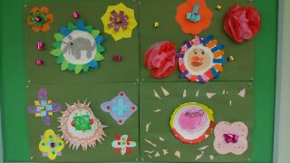 卒業を祝う飾りを作りました。みんなで、6年生の卒業を祝って、気持ちを込めて作りました。