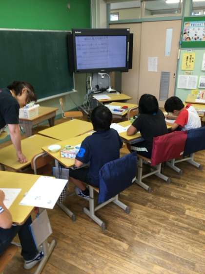 1時間目は、「磁石のひみつ」の学習をしました。 磁石についた釘の働きについて、実験を通して学びました。
