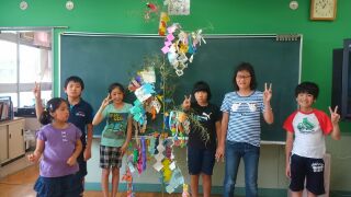 素敵な七夕飾りを作りました。願い事も短冊に書きました。願いが叶いますように?