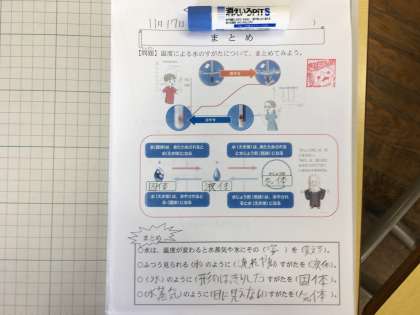 実験を通して学んだことをプリントに書いたり、黒板に書いたりしてまとめました。