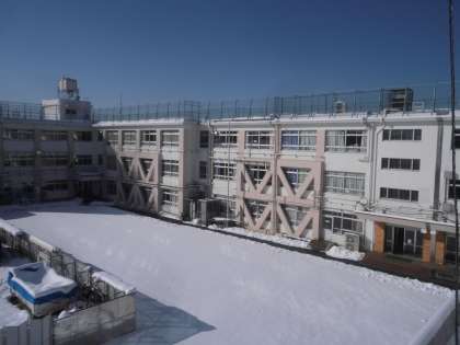 休み時間が終わった校庭には、いくつもの雪の芸術が残っていました。