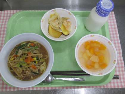みそラーメン 野菜チップス フルーツポンチ 牛乳