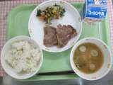しらすとごまのごはん しょうがやき やさいいため みそしる ぎゅうにゅう