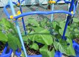 あさがおがたくさんの葉をつけてぐんぐんとつるをのばしています。 中には花を咲かせ...