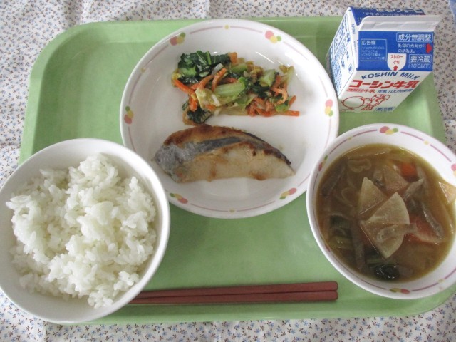 利休汁にはごまが入っています。利休汁という名前は、茶道で有名な千利休がごまが好きで、よく料理に使っていたことから名付けられたといわれています。今日は具沢山の味噌汁に、白練りごまを入れました。ごまには、歯や骨をつくるカルシウムや、血の材料となる鉄分が多く含まれています。