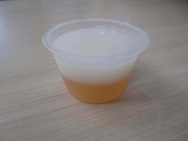紅白ゼリーの赤いゼリーはアセロラジュース、白いゼリーは、カルピスで作りました。