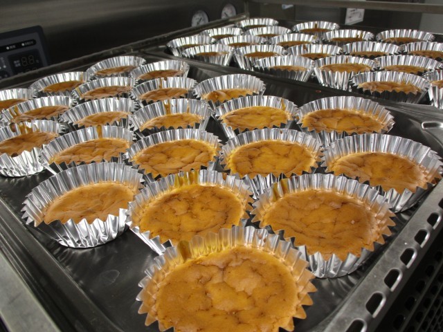 デザートのチーズケーキは、ペースト状にしたかぼちゃとクリームチーズ、卵などを混ぜた生地をオーブンで焼きました。今日はチーズケーキが大人気でした。
