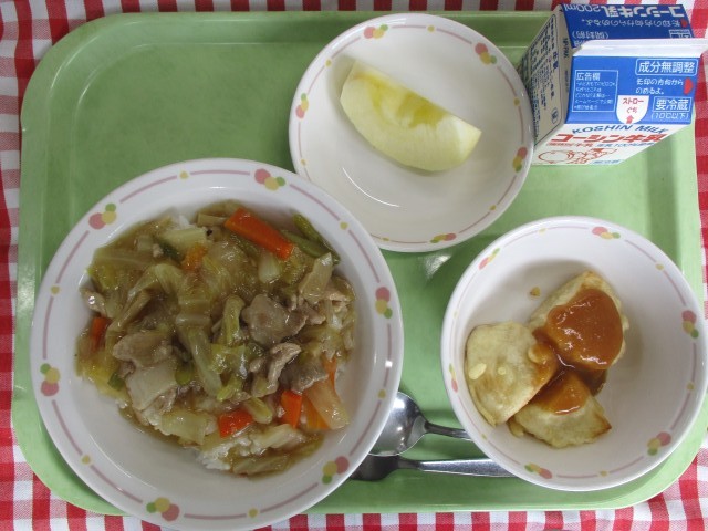 今日のデザートの「りんご」には、風邪のウイルスから体を守ったり、肌を健康に保ったりする働きがあります。