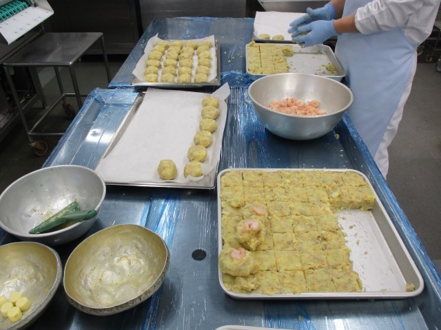 今日は普通のコロッケとは一味違う、中身で今年の運勢を占うおみくじコロッケでした。コロッケの中には、ウインナー、チーズ、えびのうち、どれか1つが入っています。