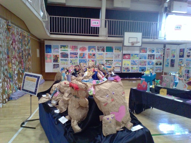 「いっしょにめぐる みんなの世界」をテーマに、展覧会を今日・明日と開催いたします。子どもたち一人ひとりが思い描いた世界を、絵画や立体作品でのびのびと表現しました。友達と力を合わせ、話し合いを重ねながら完成させた作品には、笑顔と工夫があふれています。会場いっぱいに広がる、色とりどりの世界をぜひご覧ください。子供たちが作品作りに取り組んでいるメイキング映像も会場で上映しております。併せてご覧ください。