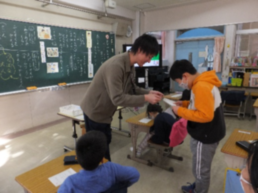 前に出て王冠をかぶった友達のよいところをみんなで見付けたり、友達と手書きのカード交換をしたり、児童同士の関わりがある充実した授業になりました。
