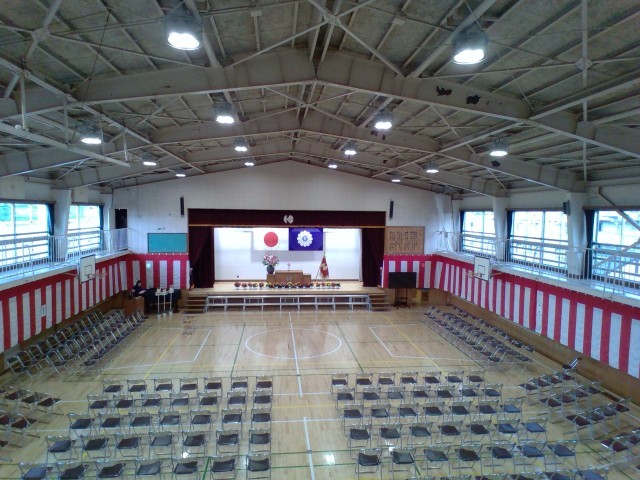 会場では、新入生のみなさんをお迎えする準備ができています。いよいよ明日は入学式ですね。
