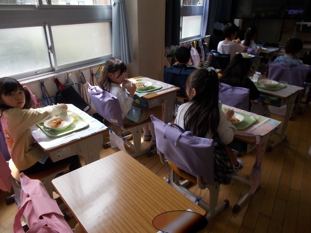 「いただきます」をして、いよいよ給食の時間です。