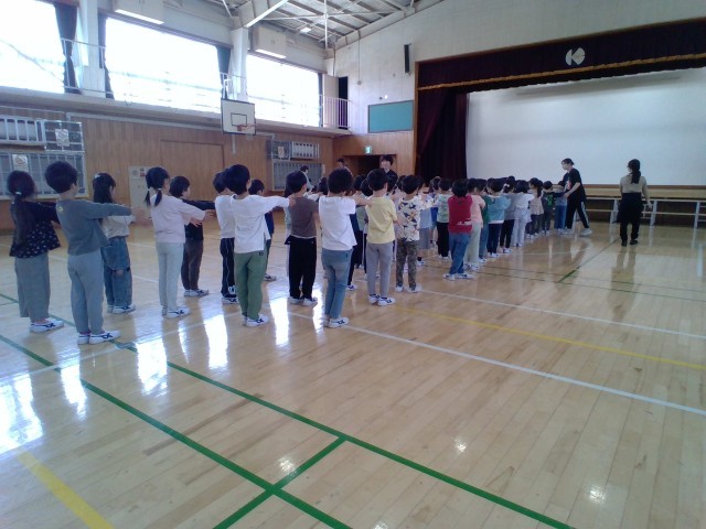体育館の前に並び、みんなで「よろしくお願いします。」とあいさつをします。大きな声で、ゆっくりと言えるように頑張っていました。応援していますよ。