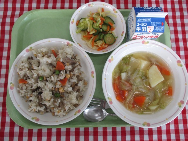 今日のピラフに入っているごぼうは、中国から伝わったとされ、昔は薬として使われていました。ごぼうを食用として食べるのは世界でも珍しく、日本と韓国のごく一部といわれています。また、ごぼうには、食物繊維がたっぷり含まれ、体の中の掃除をしてくれる働きがあります。