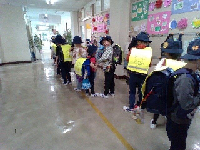 まずは学童に行く子どもたちが廊下に並びます。「あれ、〇〇さんは今日は学童に行かないのかな」と名前を呼んで確認する場面も見られました。
