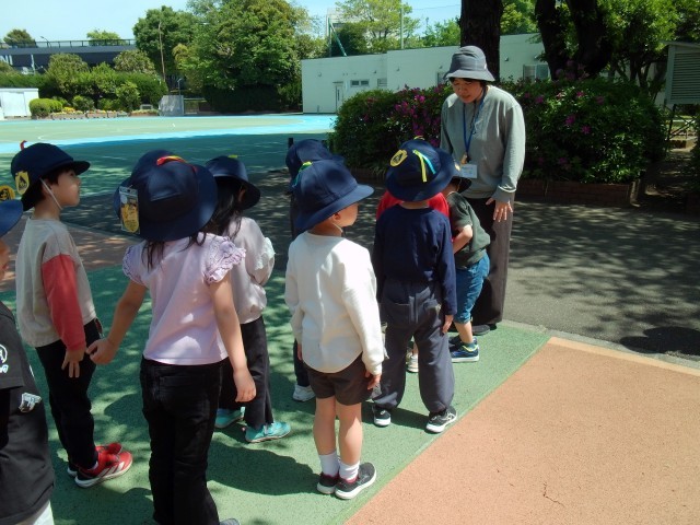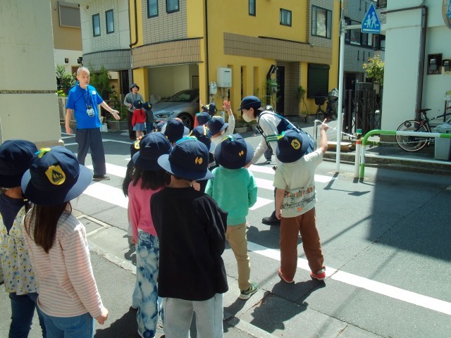 歩道の歩き方、道・信号の渡り方など、実際に学校の周りを歩いて学びました。