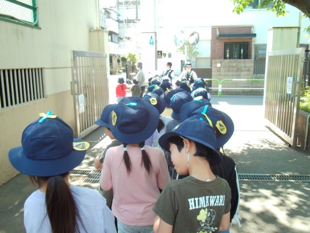 目白警察のご協力をいただいて、1年生の交通安全教室が実施されました。