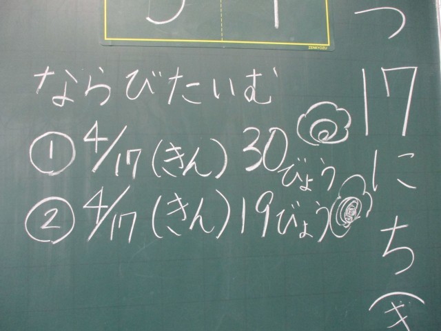 1年1組の教室から、「やったー!」という声が聞こえてきたので、入ってみると