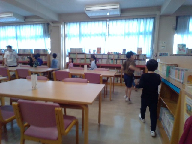 理科室・図書室・校長室・音楽室と、1年生が学校を探検していました。