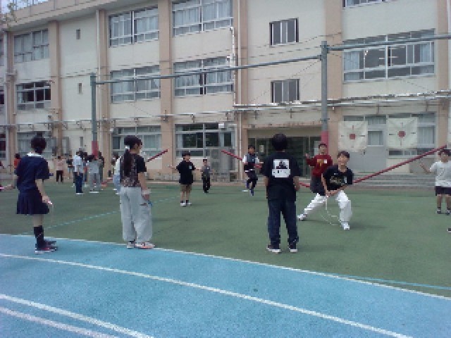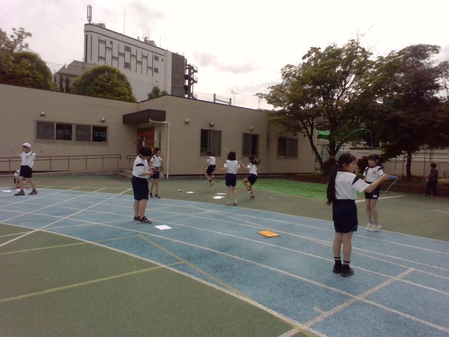 何回跳べるか、數えながらとんでいる子、二重跳びにチャレンジしている子…。