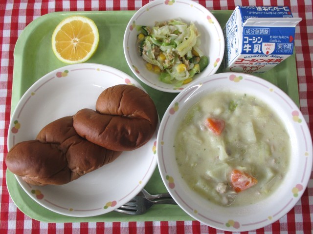 今日のシチューには、『キャベツ』が入っています。キャベツは、春と冬に美味しい時期を迎えます。今の時期のキャベツは、『春キャベツ』と呼ばれ、葉が柔らかく、鮮やかな緑色をしています。