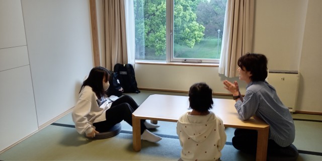 男子は他校と一緒に大部屋、女子は要小学校で一部屋です。まったり楽しく過ごします!お風呂とごはんが楽しみです!