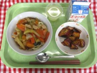 麦ご飯 みそけんちん汁 いかのかりんとう揚げ おかか和え