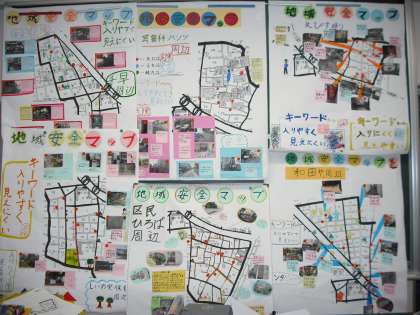 6グループそれぞれの作品を見合って、さらによりよい安全マップになるよう仕上げました。