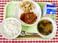ご飯 中華スープ いかのチリソース バンバンジーサラダ